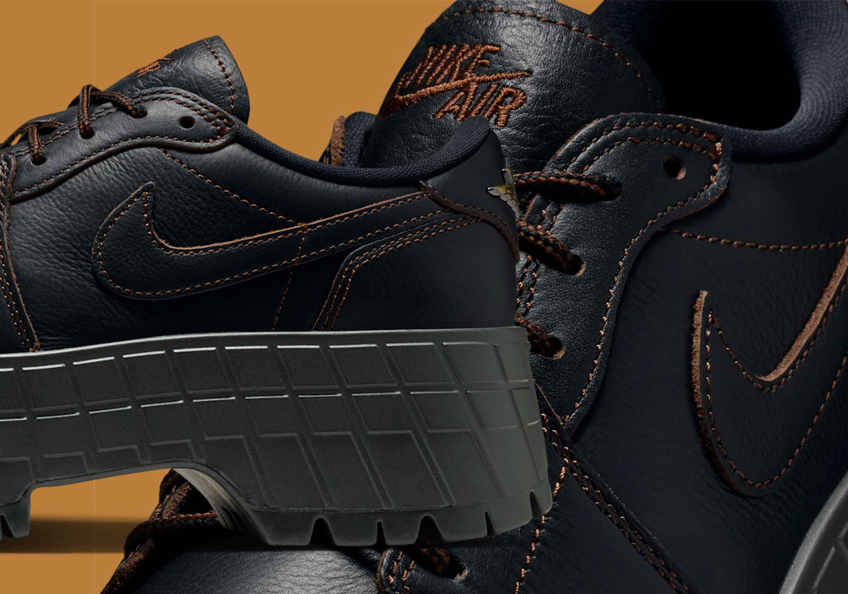 O Air Jordan 1 Brooklyn Boot chega ao mercado com uma nova roupagem em preto, alinhando-se à tendência das grandes marcas esportivas que estão explorando fusões de estilos e produtos. A mais recente versão do modelo exibe um design com plataforma exagerada, mantendo a parte superior quase inalterada para garantir um aspecto formal. Detalhes em couro cru emergem no layout escuro, enquanto toques em dourado, presentes no bico do calçado e no logo Wings, conferem sofisticação ao modelo.