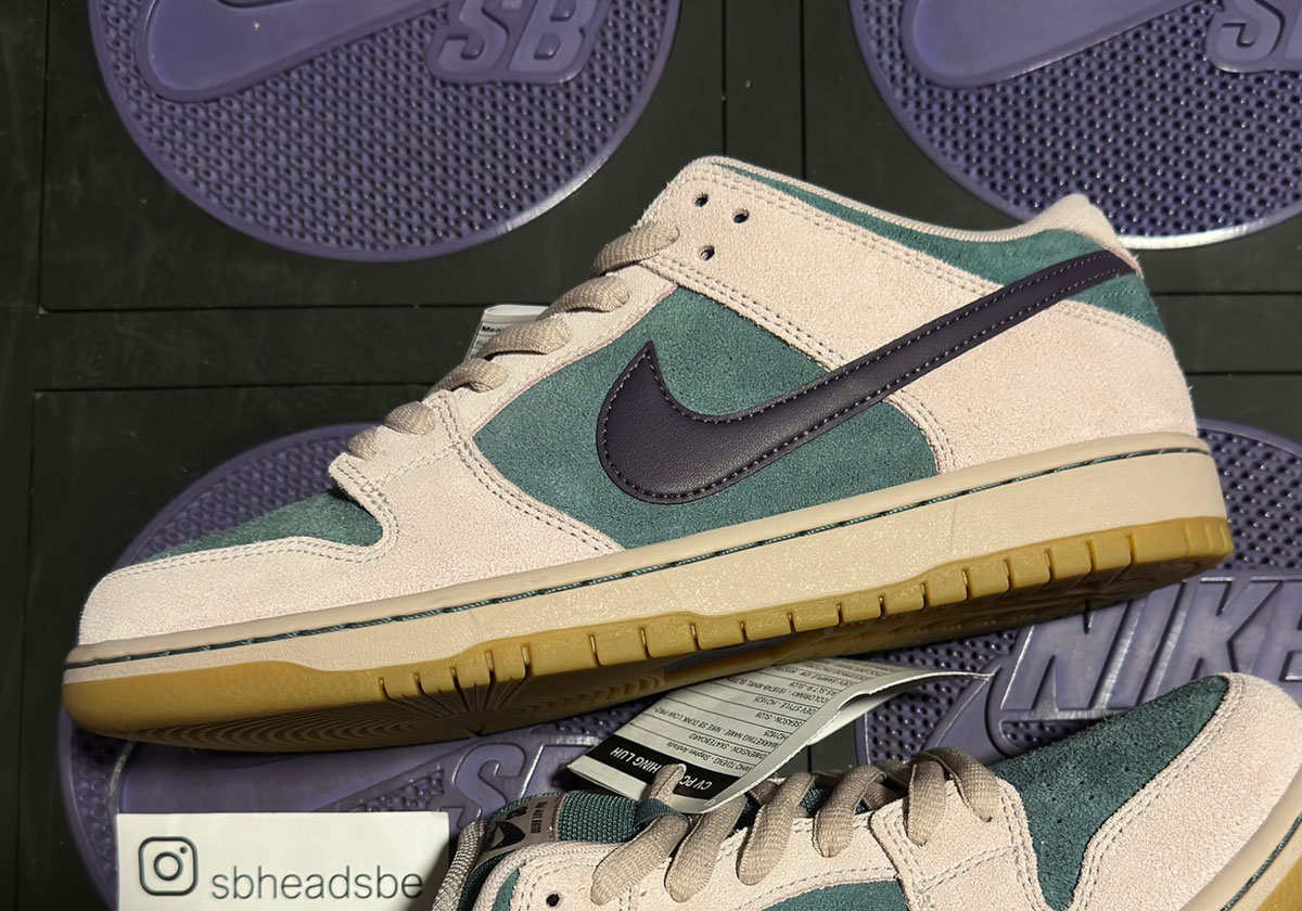 O visual do Nike SB Dunk Low “Mineral Slate” foi revelado pelo confiável informante @sbheadsbe no Instagram. O modelo apresenta uma base em suede com sobreposições cinza e o distinto fundo azul esverdeado “Mineral Slate”. Destaca-se também o Swoosh em couro em um tom azul/púrpura, complementado pela entressola branca e o solado em “Light Gum Brown”, trazendo familiaridade ao design.