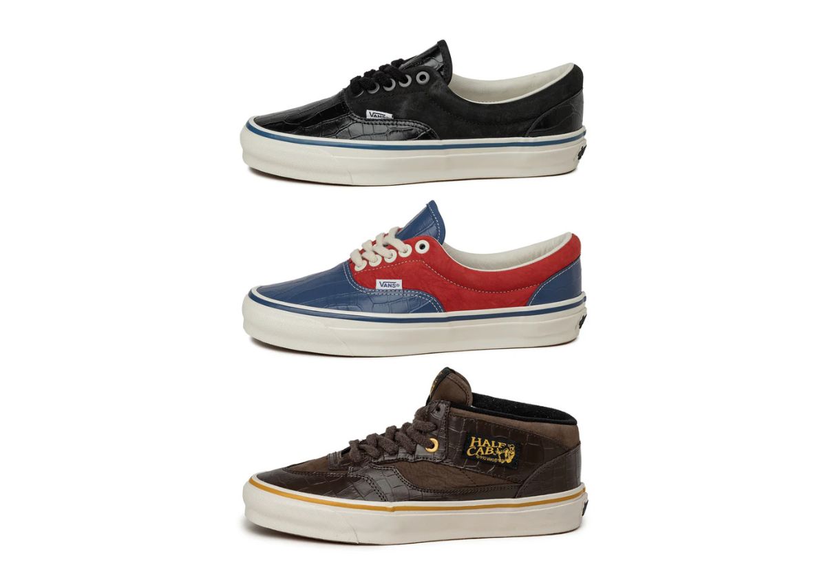 A Vans anunciou o lançamento do seu mais recente projeto, o “Croc Pack”, que traz uma abordagem sofisticada para dois de seus calçados mais icônicos: o Vans Era e o Half Cab. Este pacote inclui duas novas versões do modelo Era e um Half Cab, todos com o diferencial das solas Vibram ultra-duráveis.